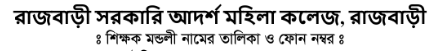 শিক্ষক মন্ডলীর নামের তালিকা ও ফোন নম্বর, রাজবাড়ী সরকারি আদর্শ মহিলা কলেজ, রাজবাড়ী