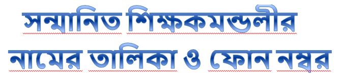 শিক্ষক মন্ডলী নামের তালিকা ও ফোন নম্বর
